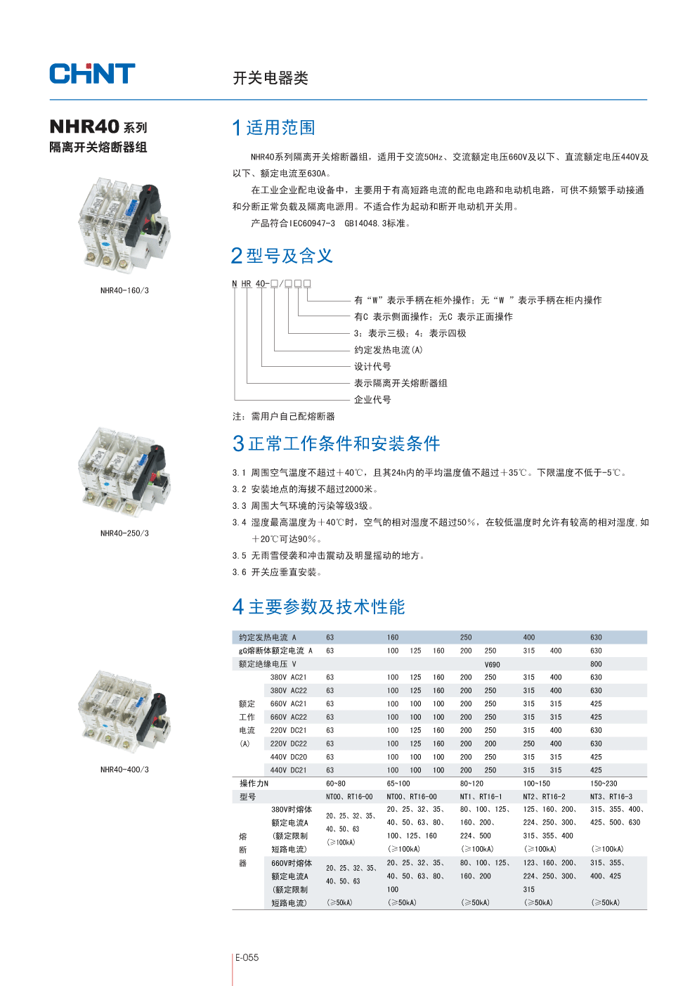 产品标题:NHR40-250/3,NHR40系列隔离开关熔断器组,CHINT正泰代理