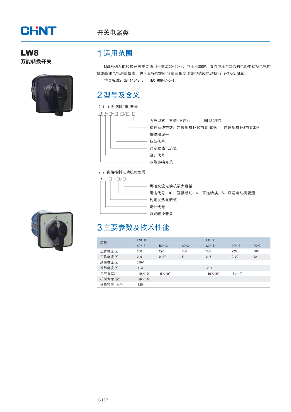 主要适用于交流50~60Hz、电压至380V,直流电压至220V的电路中转换电气控制线路和电气测量仪表。也可直接控制小容量三相交流笼型感应电动机(2.2kW及5.5kW)。符合标准:GB 14048.5 IEC 60947-5-1
