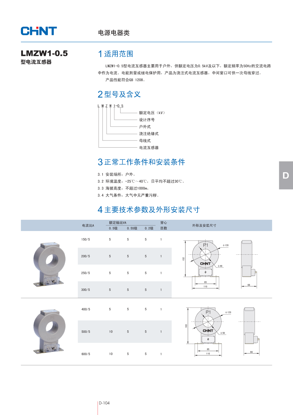 主要用于户外,供额定电压为0.5kV及以下,额定频率为50Hz的交流电路中作为电流、电能测量或继电保护用,产品为浇注式电流互感器,中间窗口可供一次母线穿过。产品性能符合GB 1208